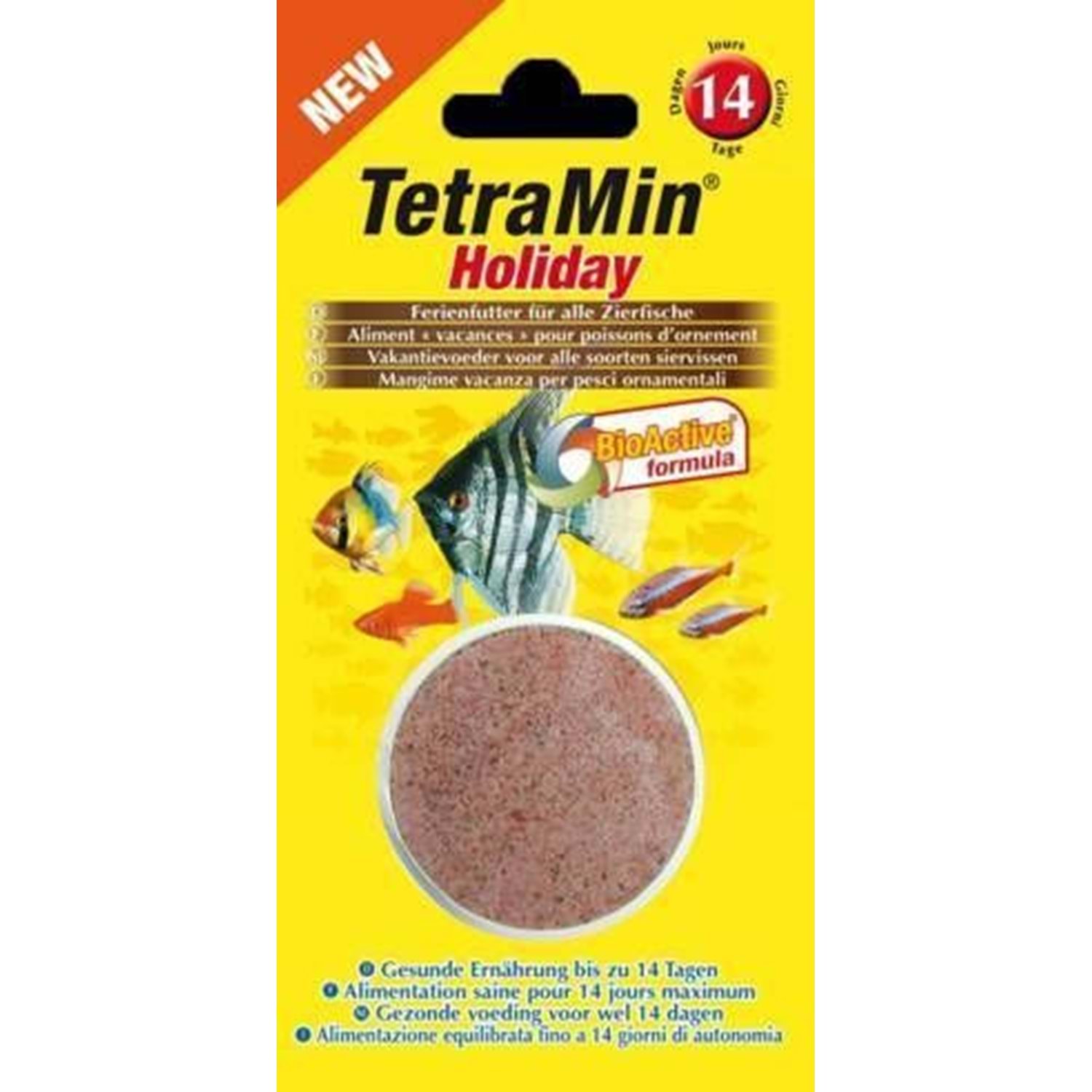 TetraMin Holiday Tatil yemi - 30 Gr Tüm tropikal süs balıkları için haftasonları veya tatil boyunca besinsel ihtiyaçlarının karşılanabileceği yemdir. Dengeli bir diyet sağlamanın yanısıra balığın büyüme ve gelişmesini hızlandırır. Yüksek oranda protein ve gerekli mineralleri içerir. Optimum oranda esansiyel yağ asitlerini içerir. Özel bir üretim tekniği ile sertleştirilmiş olan yem geç dağılır ve aynı zamanda çok kolay sindirilebilir bir yapıdadır. 14 güne kadar yemleme olanağı sunar. Küf üremesi yoktur ve su parametreleri üzerinde negatif bir etki yaratmaz. Suyun bulandırmaz ve filtrenin çalışma kapasitesini maksimum seviyede tutar. Yemin İçeriği; Yumuşakçalar ve kabuklular, mineraller, maya, vitaminler, doğal renklendiriciler, doğal katkılar. Beslenme Tavsiyesi; Akvaryum Büyüklüğü (Litre) ve Balık Sayısı ve Tablet miktarı 1-7 gün için verilecek miktar : 60 lt ve altı akvaryum için 5 - 15 balık için 1/2 tablet 60 lt – 120 lt arası akvaryum için 10 - 30 arası balık için 1 tablet 120 lt-200 lt akvaryum için 20 - 50 arası balık için 1 - 2 tablet 7-14 gün için verilecek miktar : 60 lt ve altı akvaryum için 5 - 15 balık için 1 tablet 60 lt – 120 lt arası akvaryum için 10 - 30 arası balık için 2 tablet 120 lt-200 lt akvaryum için 20 - 50 arası balık için 3 tablet