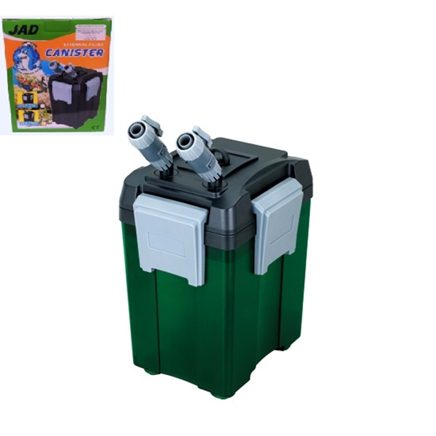 JAD (FEF) 230A Dış Filtre Transparan Yeşil Transparan Kova 3 Sepetlidir. İlk sepette (en üstteki) sünger filtre vardır. İkinci sepette Kömür bulunmaktadır. Üçüncü sepette seramik halka bulunmaktadır. Sepetteki ürünleri muadillerine göre hem fazladır hemde filtrasyon için fazlasıyla yeterlidir. VOLT:230/115V FREKANS:50/60Hz AKIŞ HIZI:800L/H POWER15W MAKS.YÜKS.:1.2m EBAT:225x265x396 mm.