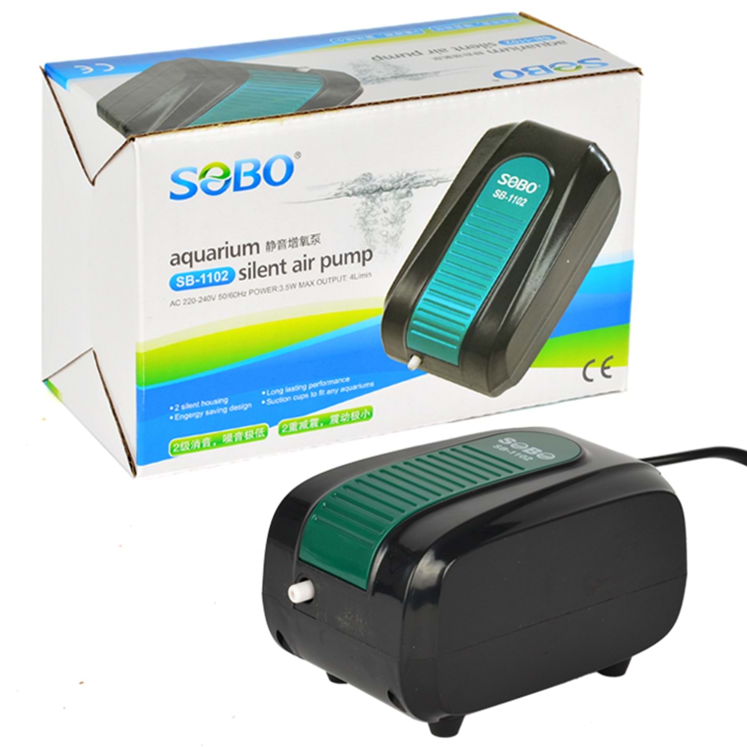 Sobo Sessiz Hava Motoru SB-1102 3,5W. 4LT/Dak. Ürün Özellikleri: 3,5 Watt Max: 4 Litre Dakika Voltaj: 220V/50Hz Ürün Ölçüleri: 11x7x5,5 Cm Kullanım Şartlarına Göre Maksimum Ürettiği Hava Gücüdür. Tatlı ve tuzlu su akvaryumları için uygundur. 50 cm den derin akvaryumlarda körükler çok kısa sürede deforme olacaktır Dolayısı ile 50 cm den derin akvaryumlarda tek çıkışlı büyük hava motorları kullanılmalıdır. Kullanma Talimatı: Kurulumu ve çalıştırılması oldukça kolaydır. Öncelikle akvaryumdan yukarıda, kuru bir yere konulması gerekir. Eğer akvaryumun kapağı varsa akvaryum üzerine konulabilir. Özellikle yukarıda olmasına dikkat edilmelidir. Aksi halde pompaya suyun geri dönüşü söz konusu olacağında pompa arızalanabilir. Check valve ile kulanılması tavsiye edilmektedir. Pompa uygun bir yere yerleştirildikten sonra hava çıkış borusunun ucuna hava motoruna uygun olarak temin edeceğiniz hortumun takılması ile pompa kullanıma hazırdır.