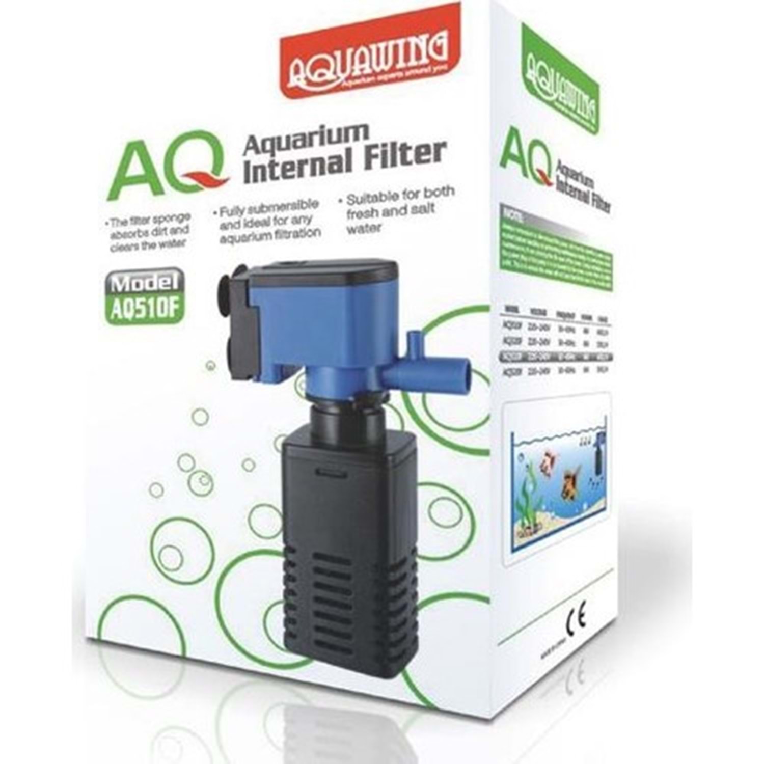 Aquawing AQ510F İç Filtre 4W 400L/H Aquawing AQ510F İç Filtre, akvaryumlar için 4W güç tüketimi ile 80 litreye kadar olan akvaryumlar biyolojik ve mekanik temizlik yapabilmeniz için geliştirilmiştir. Sessiz ve yüksek performans ile çalışma prensipiyle üretilmiştir. Akvaryum canlıları için yaşanabilir ve temiz bir ortam oluşturur. Aquawing İç Filtreler, tamamı su içerisinde kalacak şekilde çalışmalıdır. Kapalı devre elektrik sistemi ile güvenli bir şekilde çalışmaktadır. Akvaryum camına üzerinde bulunan vantuzlar ile asılarak kullanılmaktadır. Aquawing iç filtreler paket içerisinde hava hortumu ve vantuzu ve diğer bağlantı parçaları ile birlikte gönderilmektedir. Öne çıkan özellikler; * Uzun ömürlü performans, * Enerji tasarruflu çalışma * Güçlü ve sessiz çalışma prensibi, * Pratik kullanım ve kolay temizlik. Ürün ölçüleri; * En: 3,5cm, Boy: 5cm, Yükseklik; 14cm