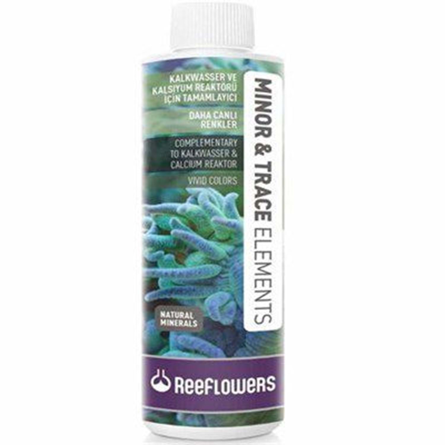 ReeFlowers Minor&Trace-Elements 250 ml Deniz suyunda birçok eser element bulunur ve bu elementler mercanlar, balıklar ve suda yaşayan tüm canlılar tarafından sürekli olarak tüketilir. Canlıların sağlıklı kalabilmesi ve canlı renklere sahip olabilmesi için bu elementlerin düzenli olarak eklenmesi gerekir. ReeFlowers Minor & Trace Elements, kalsiyum reaktör ve kalkwasser kullanılan sistemlere özel tasarlanmıştır ve bu tür sistemlerde ihtiyaç duyulan diğer elementleri sağlar. "Reeflowers Enriched Kalkwasser? ile birlikte kullanıldığında ortalama yükte bir akvaryumun genel ihtiyaçlarını karşılar. Kullanım Talimatı 1 lt doymuş "Reeflowers Enriched Kalkwasser" çözeltisi için 1 ml kullanılmalıdır. Ortalama yükte bir akvaryum için 100 lt'ye haftalık 3 ml kullanılması tavsiye edilir (1 kapak = ~ 6 ml). Uzun süreli kullanımda 100 lt için haftalık 6 ml'den daha fazla kullanılmamalıdır. İçindekiler: Potasyum, Stronsiyum ve deniz suyunda eser miktarda bulunan elementleri içerir.