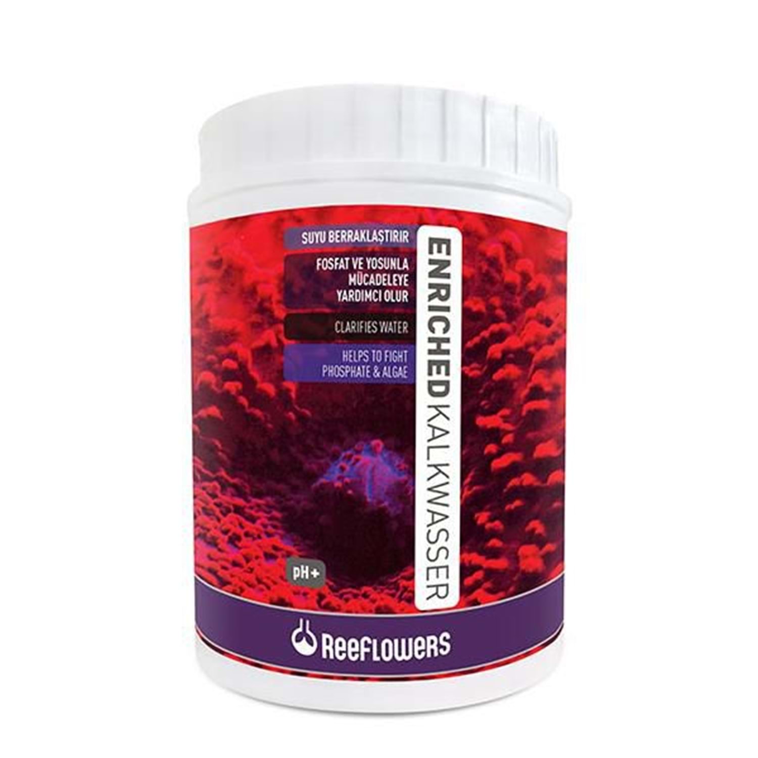 Reeflowers Enriched Kalkwasser 1000 ml. • BÜYÜMEYİ HIZLANDIRIR • SUYU BERRAKLAŞTIRIR • FOSFAT VE YOSUNLA MÜCADELEYE YARDIMCI OLUR ReeFlowers Enriched Kalkwasser, magnezyum ve stronsiyum ile zenginleştirilmiş saf kalsiyum hidroksit ihtiva eder. İskelet oluşumunda gerekli olan kalsiyum, magnezyum ve stronsiyum elementlerini iyonik dengede arttırır. Havadaki ve suda çözünmüş karbondioksiti kullanarak kH ve pH değerlerini düzenler. İnorganik fosfatın ve ağır metallerin çökertilmesini sağlar, suyu berraklaştırır. Kalsifikasyonu arttırır. Canlıların beslenme ve büyüme potansiyellerini arttırır. Koralin alg oluşumunu hızlandırır. Kalsiyum Reaktör kullanılan tanklarda karbondioksitin sebep olduğu pH düşmesi, yosunlanma, vb. sorunların oluşmasını önler. “ReeFlowers Minor & Trace Elements” ile birlikte kullanıldığında ortalama yükte bir akvaryumun genel ihtiyaçlarını karşılar. KULLANIM TALİMATI 1 lt R/O suya 1,4 gr veya 1 lt içme suyuna 1 gr (1 ml kalkwasser = ~0,6 gr) ekleyiniz. Kapalı bir kapta iyice karıştırdıktan sonra doymuş kalkwasser çözeltisini azar azar direk canlılara gelmeyecek şekilde ekleyiniz. Bir günde tank hacminin % 1’inden, bir seferde %0,25’inden fazla (100 lt için 250 ml) çözelti eklemeyiniz. 1 lt doymuş kalkwasser çözeltisi 100 lt’de ortalama 1,2 dkH ve 8 ppm kalsiyum artışı sağlar. Hazırlanan çözelti hava ile uzun süre temas ederse veya direkt kalsiyum reaktörünün çıkışına yakın bölgeye eklenirse karbondioksit ile tepkimeye girerek kalsiyum karbonat çökmesi oluşur ve çözeltinin etkisi azalır. Kalkwasser Reaktör ile su tamamlama ünitesine veya dozaj pompasına bağlanarak kullanılması tavsiye edilir.