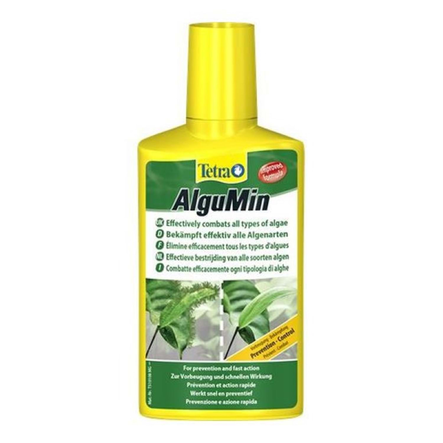 Tetra Algumin Plus Alg/Yosun Önleyici 100 ml. Tetra Algumin Plus, Tüm bitkili ve tatlı su akvaryumlarına uygundur. Algler le mücadelede etkili, biyolojik tedavide kullanılan geniş spektrumlu bir etkiye sahip su düzenleyicidir. Biyolojik olarak yosun oluşmasını önlemenin yanı sıra suyun dengesini pozitif olarak ayarlar. Bitkilerin sağlıklı gelişmesini sağlar. Suyun yeşermesine neden olan yeşil alglerin yok edilmesinde kullanılır. En sık görülen tüm yeşil alg türleri için geniş spektrumlu bir etkiye sahiptir. Anti-alg giderici olarak humik asitleri içerir. Balıklara, bitkilere ve mikroorganizmalara zararsızdır. Her 20 litre akvaryum suyu için 5 ml Tetra Aqua Algumin eklenmesi tavsiye edilir. Kullanıldıktan sonra, daha önceden oluşmuş yosunlar mekanik olarak temizlenmelidir. İstege göre 3 - 4 hafta sonra tekrar kullanılabilir.