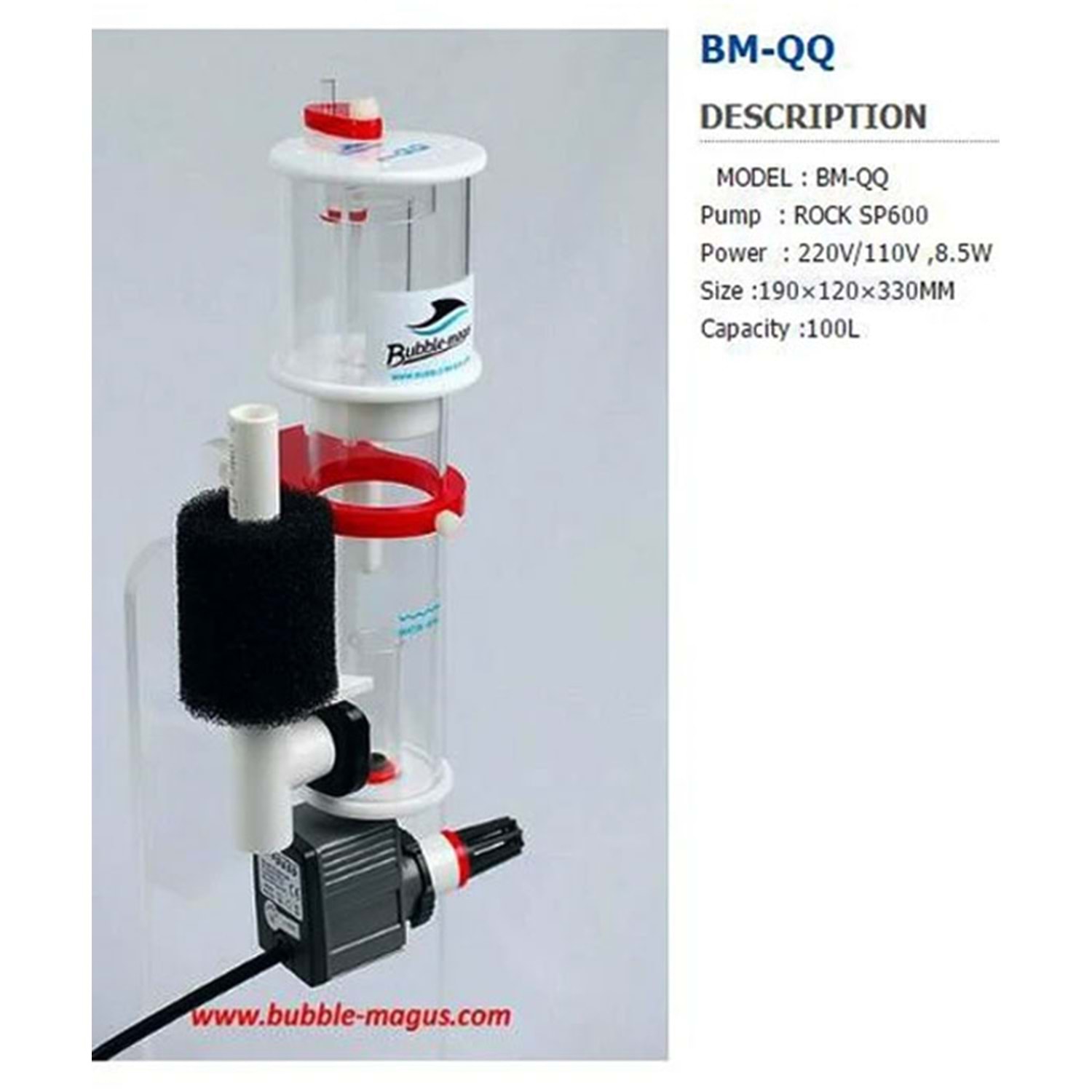 Bubble Magus BM-C QQ Skimmer Protein skimmerler Deniz Akvaryumları için üretilmiş temizleme ürünüdür. Kısacası doğadaki temizliği sağlamak için bir doğa taklidi diyebiliriz. Bir anlamda sahil dalgalarından ilk düşünenlerin aklına gelmiş diye rivayet edildiğini belirtebiliriz. Deniz akvaryumu gibi mükemmel veya iyi su koşullarını gerektiren akvaryumu sağlıklı yürütebilmek için çok önemli bir yardımcı ekipmandır. Suda oluşan Nitratın,Yağın, Balık Dışkılarının ve diğer olumsuz etkilere sebep olan tüm atıkların uzaklaştırılmasını sağlar. Protein skimmer her zaman ifade edildiği gibi alt sump içerisinde daha verimli çalışmaktadır. Deniz Akvaryumlarında Atık süzme konusunda en önemli ekipmanınız olarak ifade edilir. Protein Skimmerlar sudan çeşitli karbonhidratları, lipidleri ve bazı amino asitleri alır ve temizler. Aynı zamanda protein toplayıcılar fosfat, ağır metal kontrolünde de önemli bir filtre aracıdır. Sudan inorganik fosfatı alırken toplanan diğer bileşiklerle birlikte fosfatın organik kaynaklarını toplama kabına depolayarak onların etkisiz hale gelmelerini sağlar. Sağlıklı çalışan bir protein skimmer ile sürekli su değişimleri yapmanıza gerek kalmaz. Protein skimmer'sız bir deniz akvaryumunda düzgün bir Deniz yaşamı olamaz. Bubble Magus Protein Skimmerler yıllardır güvenle kullanılan kaliteli ürünlerdir. Maksimum 100 litreye kadar olan akvaryumlara uygundur. Bilgiler Bubble Magusun Resmi sitesinden alınmıştır. Ölçüleri: Kapasitesi : 100 litre Motoru: ROCK SP600 Motor Gücü : 8.5 Watt Boyutlar : 12.5 x 8.5 x 54.5 cm Ölçüler dıştan dışadır. Ölçüler + veya - 1 cm değişiklik gösterebilmektedir. Kullanımı: Her zaman ifade edildiği gibi Protein Skimmer kalitesi kadar onu nasıl kullandığınız da önemlidir. Yeterli verim alamadıktan sonra kalitesinin önemi de azalmaktadır. Toplama aşamasında elde edilecek köpük kalitesi Protein Skimmer'ın kalitesi demektir. Islak toplama ve katı toplama olarak ifade edilebilecek toplatma şekilleri bulunmaktadır. Reef akvaryumlarında daha çok katı toplama tercih edilir. Balık yükü olan akvaryumlarda partikülleri almak adına daha ıslak bir toplatma yaptırılabilir. Sump sistemli akvaryumlar protein skimmer kullanımı için en ideal yerdir. Protein skimmerler aynı zamanda yerine ve ihtiyaca göre hastalık tedavilerine yardımcı unsur olarakta kullanılabilir. Aşırı tortulanma yüzünden balık gözlerinde oluşan tozlanma, buğulanma gibi sorunları yok etme aşmasında toplatma ıslak toplamaya çevrilebilir.