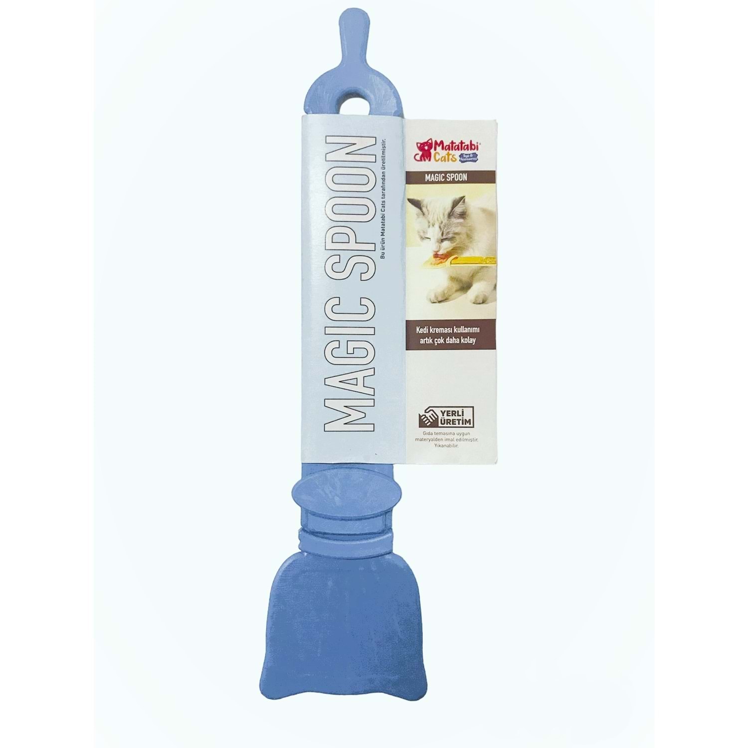 MATATABİ CATS MAGIC SPOON Mavi (KOLAY BESLEME KAŞIĞI) Magic Spoon kedi/köpek kremalarını evcil dostunuza yedirebilmek için çok büyük kolaylık sağlayan bir üründür.Kedi kremalarını yedirirken kedilerin kremaya saldırmaları,ambalajı parçalamaları,yere dökülmesini sona erdiren son dönemlerin en etkili ürünüdür.Kedilerin paketi ısırmaları durumunda olası ağız kesiklerini önler.Ürünü sıkarken yerlere dökülmemesini sağlar.Ambalajın içindeki tüm ürünü rahatlıkla sıkmaya yardımcı olur.Uç kısmındaki kilit parçası sıkıştırılarak ödülün kalanını dolapta saklamanıza yardımcı olur.Kullanımı çok basittir.Kremayı ürün üzerindeki aparatların arasına doğruca yerleştirip ürünün uç kısmını kestikten sonra mandalı yavaşça iterek kaşık kısmına dökülmesi sağlanır.Evcil dostunuz bu kısımdan güvenle ödülünü yiyerek keyfine bakacaktır. Magic spoon gıda temasına uygun malzemeden yapılmıştır. Yıkanabilir ve materyal çok fazla kir tutmayacak şekilde üretilmiştir. Kullanımı çok kolaydır. Uç kısmındaki kilitle ürünün kalanı saklanabilir. Sürekli kullanıma uygundur. Tamamen yerli üretimdir.Kullanım şekli ambalajın üzerindedir. Renk görselden biraz farklı olabilir. BOY:27 cm Genişlik:6,5 cm dir tekli olarak satılır