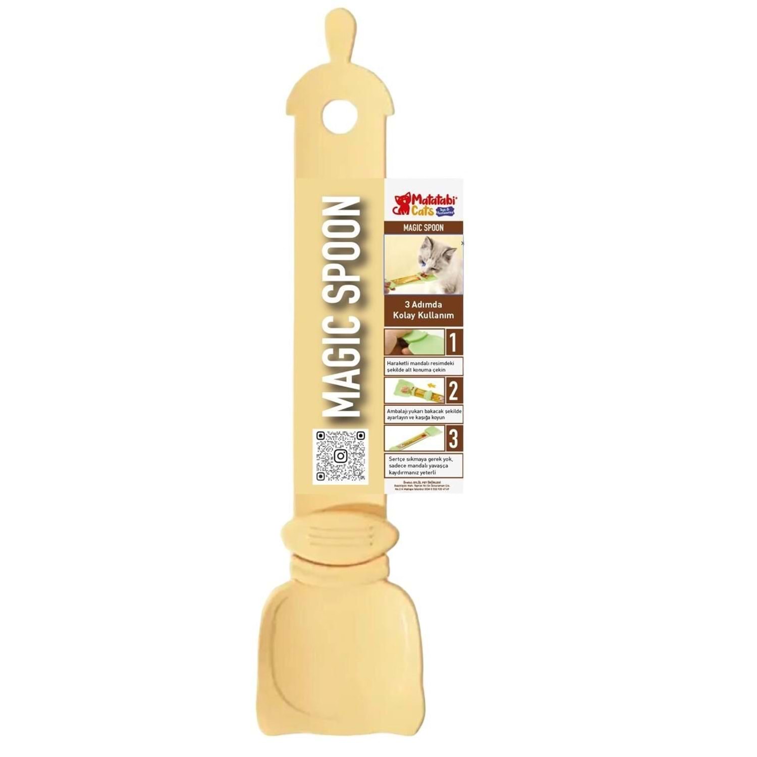 MATATABİ CATS MAGIC SPOON Sarı (KOLAY BESLEME KAŞIĞI) Magic Spoon kedi/köpek kremalarını evcil dostunuza yedirebilmek için çok büyük kolaylık sağlayan bir üründür. Kedi kremalarını yedirirken kedilerin kremaya saldırmaları, ambalajı parçalamaları, yere dökülmesini sona erdiren son dönemlerin en etkili ürünüdür. Kedilerin paketi ısırmaları durumunda olası ağız kesiklerini önler. Ürünü sıkarken yerlere dökülmemesini sağlar. Ambalajın içindeki tüm ürünü rahatlıkla sıkmaya yardımcı olur. Uç kısmındaki kilit parçası sıkıştırılarak ödülün kalanını dolapta saklamanıza yardımcı olur. Kullanımı çok basittir. Kremayı ürün üzerindeki aparatların arasına doğruca yerleştirip ürünün uç kısmını kestikten sonra mandalı yavaşça iterek kaşık kısmına dökülmesi sağlanır. Evcil dostunuz bu kısımdan güvenle ödülünü yiyerek keyfine bakacaktır. Magic spoon gıda temasına uygun malzemeden yapılmıştır. Yıkanabilir ve materyal çok fazla kir tutmayacak şekilde üretilmiştir. Kullanımı çok kolaydır. Uç kısmındaki kilitle ürünün kalanı saklanabilir. Sürekli kullanıma uygundur. Tamamen yerli üretimdir. Kullanım şekli ambalajın üzerindedir. Renk görselden biraz farklı olabilir. BOY:27 cm Genişlik:6,5 cm dir tekli olarak satılır