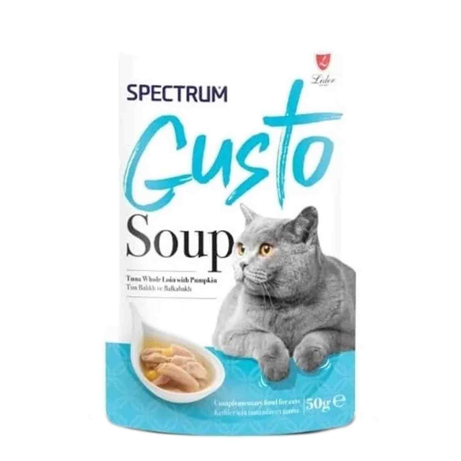 Spectrum Gusto Ton Balıklı ve Balkabaklı Çorba 50gr Çorba, tamamlayıcı mama olarak veya günlük ödül olarak verilebilir. Kaşık kullanarak ufak miktarlarda birkaç seferde verebilirsiniz. Kediniz için sürekli taze içme suyu bulundurun. Paket üzerindeki baskıya bakınız. İçindekiler: Su, Ton balığı fileto 25,40%, Balkabağı 4,7%, Balık suyu, Doğal kıvam verici (Tapyoka nişastası (E1442), Guar sakızı (E412)). Besin Değerleri: Ham Protein 9%, Ham Yağ 0,2%, Ham Kül 1%, Ham Selüloz (Lif) 0,1%, Nem 90%.