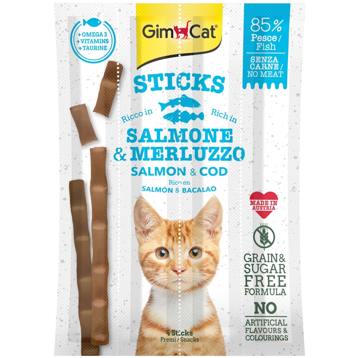 Gimcat Tahılsız Somon ve Atlantik Morina Balıklı Kedi Ödül Çubukları 4 Parça (20 Gr) Ürün Özellikleri: Sunumu pratik ve kolaydır. İçerdiği A,D ve E vitaminleri kedilerin deri ve tüylerine parlaklık verir. Aynı zamanda kedi sahiplerinin kedileriyle olan ilişkilerini kuvvetlendirir. Yemin Bileşimi: Sığır eti ve türevleri ,Balık eti ve türevleri,Maya, Şeker (Sakkaroz) ,Mineraller Analitik değerler: Ham Protein %35.00 , Ham Yağ %20.00, Ham Selüloz, %6.00 , Ham Kül %7.50 , Nem %22.00 Vitaminler: Vitamin A 5.000IU/kg,Vitamin D3 500 IU/kg,Vitamin E 5mg/kg, taurin 1.000 mg Kullanım Talimatı: Oda sıcaklığında saklayınız Beslenme Talimatı: Orta boy kedilere günde 1- 2 çubuk verilir
