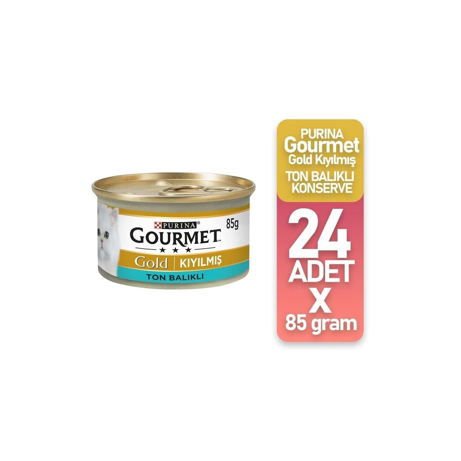 Gourmet Gold Kıyılmış Ton Balıklı Kedi Konservesi 85 Gr. 24 Adet Gurme Altın Tuzlu Kek kesinlikle sofistike kedi duyularınızı memnun edecektir. Lezzetsiz orkinos parçalarını, karşı konulmaz bir kek dokusu ile bir miktar sosla terbiyeli. Yüksek kaliteli malzemelerle hazırlanan bu, kedinizin sevdiği bir yemek deneyimine sahip olmasını sağlar. Yetişkin kediler (1-7 yaş) için tam ve dengeli beslenme sağlar. Yavru kediler veya yaşlı kediler için uygun değildir. Gerçek kedi uzmanları çeşitliliğe, yeni lezzet kombinasyonlarına ve damak zevkini veren sofistike dokulara değer verir. GOURMET® Gold, sadece sizinki gibi kediler için tavuklu tuzlu kek yarattı. Yüksek kaliteli malzemeler ve doğranmış tavuk parçaları, özenle hazırlanmış tarifimizin bir parçasıdır, zarif bir sos dokunuşuyla, bu yemek kedilerin kesinlikle tapacağı lezzetli bir kek dokusuna sahiptir. Yemeklerimiz eksiksiz ve dengelidir, yetişkin kedinize (1-7 yaş arası) sağlıklı, tatmin edici bir yaşam tarzı için ihtiyaç duydukları her şeyi sağlar. Kedilerin en seçici olanlarının bile bir GOURMET® Gold Savory Cake'in zevkini takdir edeceğine inanıyoruz. GOURMET® Gold Savory Cake, dikkatlice baharatlanmış tavuk ile özenle doğranmış parçalara sahiptir. Tarif, kedinizin her ısırığın tadını çıkarması için lezzetli bir kek dokusunda bir araya gelir. İçerik : Et ve hayvansal türevler (% 4'ü tavuk), Bitkisel protein ekstraktları, Balık ve balık türevleri, Çeşitli şekerler, Mineraller. Analitik Bileşenler Nem:% 74.0 Protein:% 17.0 Yağ içeriği:% 4. Ham kül:% 2.0 Ham elyaf 1.1 Besleme Rehberi 4 kg'lık yetişkin bir kedi için, ayrı yemeklerde günde 2 ila 3 kutu. Yetişkin bakım ortalamaları normal çevre sıcaklıklarında orta derecede aktif kedilere dayanmaktadır. Bireysel ihtiyaçlar değişir ve beslenme, kedinizi zayıf, sağlıklı bir vücut ağırlığında tutmak için gerektiği şekilde ayarlanmalıdır. Her zaman temiz ve taze içme suyu bulundurulmalıdır. Oda sıcaklığında servis yapın.