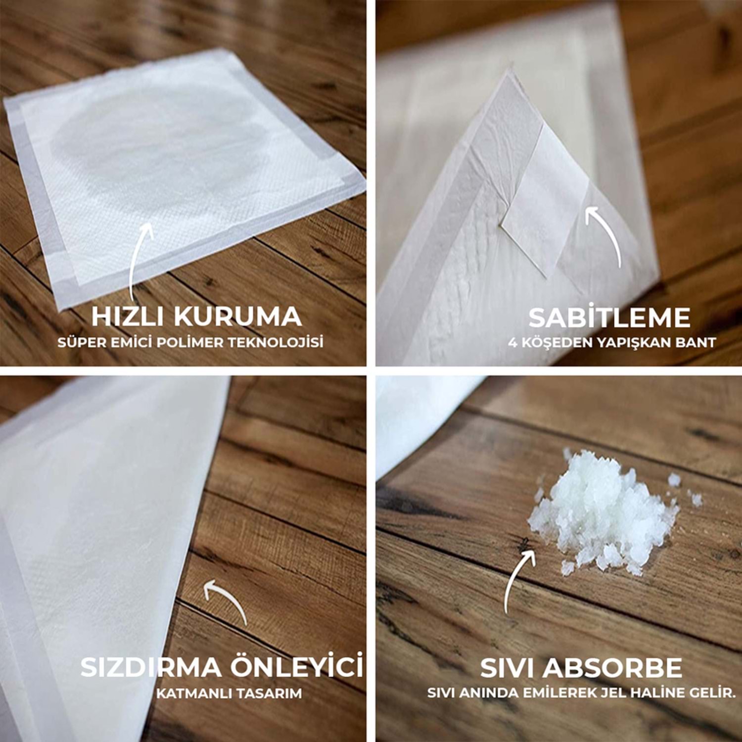 Beavis Köpek Tuvalet Eğitim Çiş Pedi 60x90 cm. 10+2 Adet Köpekler İçin Tuvalet Eğitim Pedi % 100 Süper emici polimer teknolojisi ile birlikte sızdırmazlık özelliği sunan Beavis Premium Care Home Tuvalet Pedi sevimli dostlarımızın yaşam kalitesini arttırmak üzere özel olarak geliştirilmiştir. Güçlü etkisiyle kötü kokuları absorbe ederek, kaydırmaz bant sistemi sayesinde tuvalet eğitimi için belirlediğiniz alanın zeminine güvenli şekilde tutunmaktadır. Tanıştığınız ilk günlerde beslenme süresinden hemen sonra dostumuzu pedin üzerine yavaşça bırakarak pedin üzerinde zaman geçirmesine fırsat verebilirsiniz. Eğer amacınız tuvalet ihtiyacını yaşam alanı dışına alıştırmak ise, her geçen gün tuvalet pedini çıkış kapınıza doğru yaklaştırarak dışarıya alışmasını sağlayabilirsiniz. Süper Emici Beavis Tuvalet Pedi süper emici polimer teknolojisi sayesinde % 100 olarak sıvıyı emer ve hapseder. Standart tuvalet pedlerine göre çok daha fazla sıvı emme kapasitesine sahiptir. Koku Kontrolü Beavis Tuvalet Pedi kötü kokuyu anında absorbe ederek etrafa yayılmasını engeller. Koku problemi olmadan evin her yerinde rahatlıkla kullanılabilir. Kaydırmaz Yapışkan Bantlar Tuvalet pedinin dört köşesinde yapışkan bantlar bulunur. Bu bantlar pedi yere sabitleyerek kaymasını önler. Bu sayede dostunuzun tuvalet eğitimini kolaylaştırır. Sızıntı Önleyici Katmanlı tasarıma sahip Beavis Tuvalet Pedi sıvıyı alt yüzeye geçirmez ve bulunduğu ortamın temiz kalmasını sağlar. 2 Adeti hediyeli olmak üzere ambalaj içerisinde 12 adet tuvalet pedi bulunur. 60x90 Cm