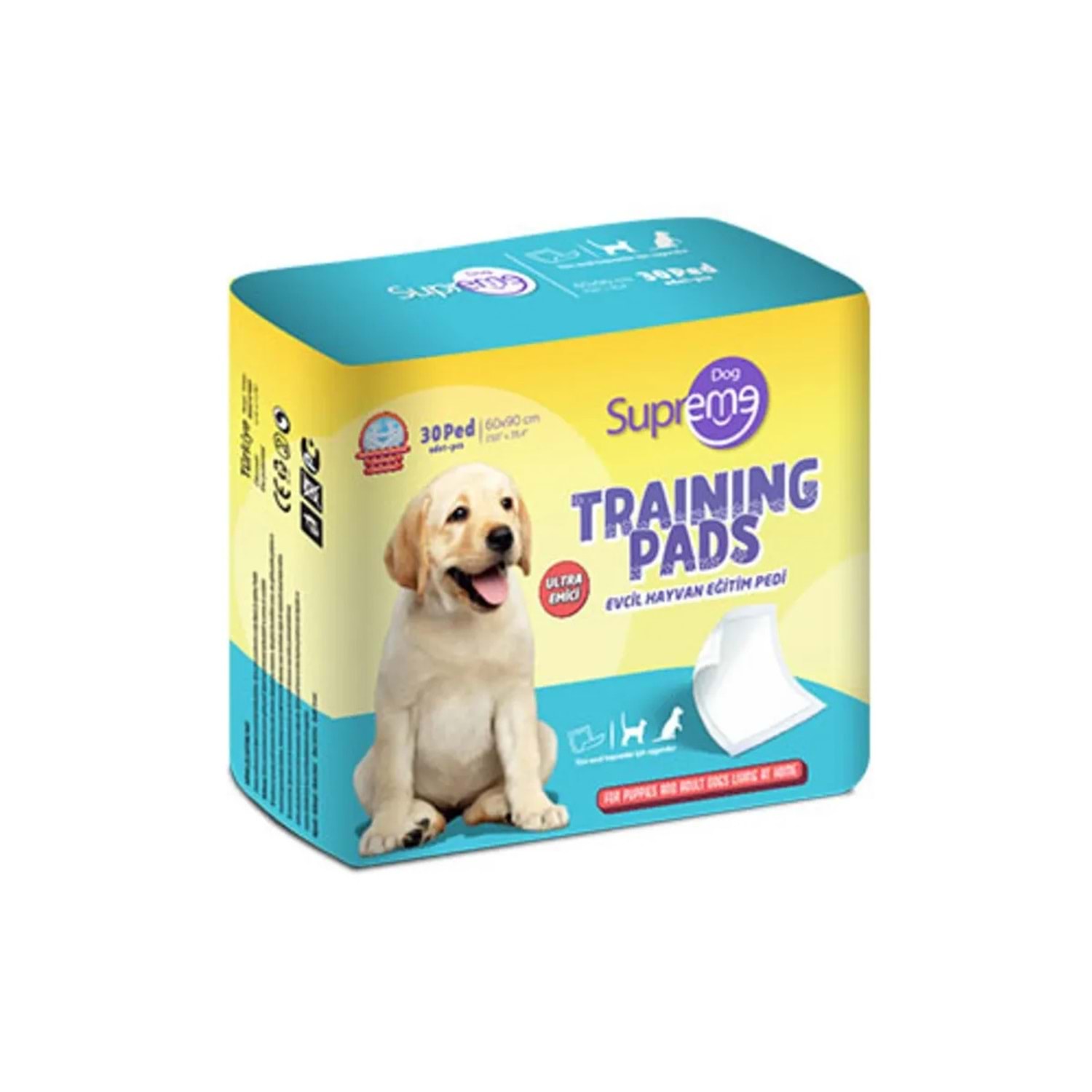 Supreme Dog Training Pads Ekstra Emici Köpek Çiş Eğitim Pedi 60x90 Cm 30'lu Supreme Dog Ekstra Emici Eğitim Pedi, dostunuzun tuvalet eğitimi için kullanabileceği şekilde tasarlanmıştır. Normal pedlere göre ekstra emici polimerlerle özel üretilmiştir ve iki kat daha fazla sıvıyı emer. 60x90cmlik ölçüsündedir, tuvalet tablasına veya direkt zemine serilerek kullanılabilir. Sıvının sızmasını önleyen kenarlara sahiptir, yırtılmalara karşı dayanıklıdır. Evcil hayvan eğitim pedi olarak kedilerde de kullanılabilir. Ürün Özellikleri; * 60x90cm boyutundadır. * 1 pakette = 30 adet ped bulunmaktadır.
