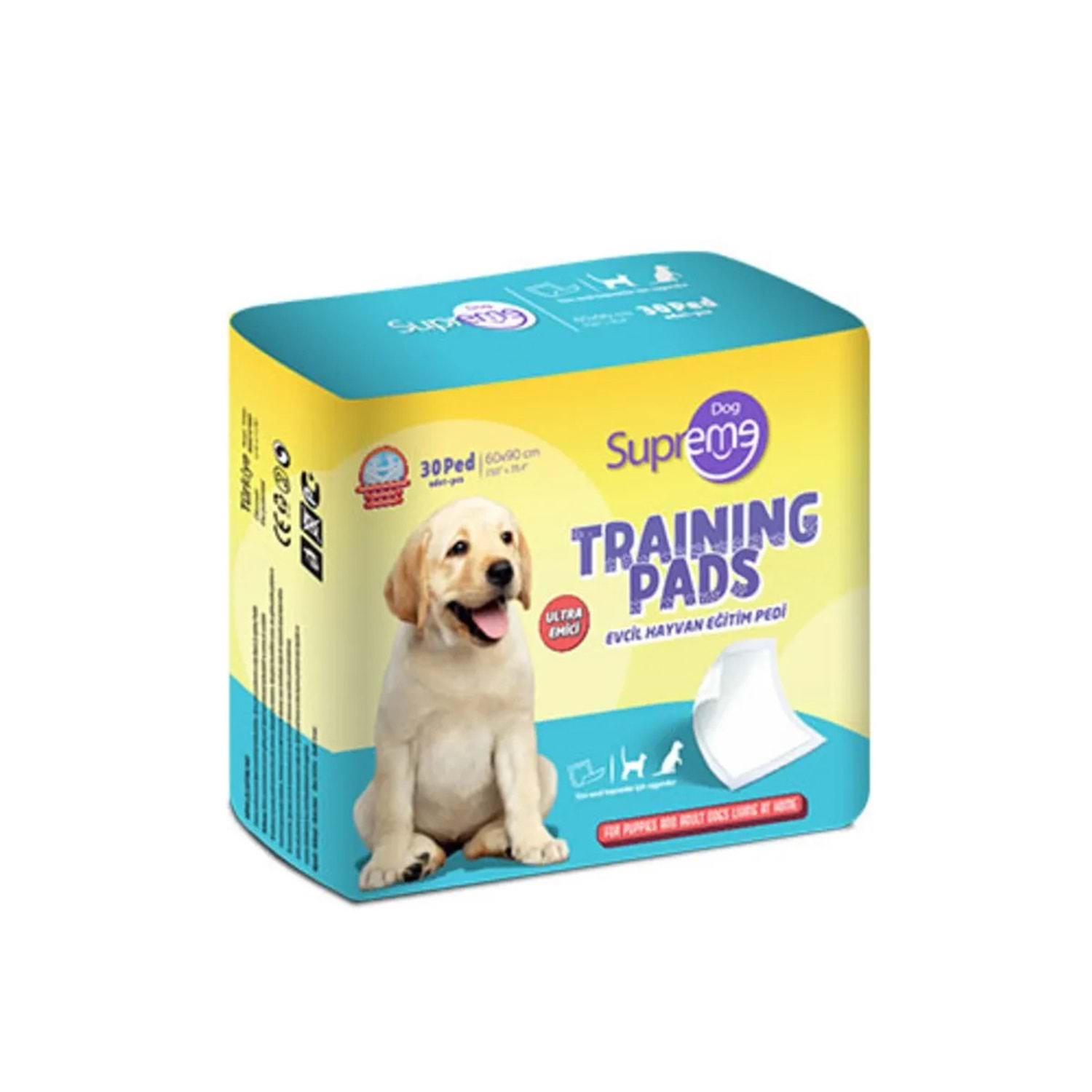 Supreme Dog Training Pads Ekstra Emici Köpek Çiş Eğitim Pedi 60x90 Cm 30'lu X 3 Paket Supreme Dog Ekstra Emici Eğitim Pedi, dostunuzun tuvalet eğitimi için kullanabileceği şekilde tasarlanmıştır. Normal pedlere göre ekstra emici polimerlerle özel üretilmiştir ve iki kat daha fazla sıvıyı emer. 60x90cmlik ölçüsündedir, tuvalet tablasına veya direkt zemine serilerek kullanılabilir. Sıvının sızmasını önleyen kenarlara sahiptir, yırtılmalara karşı dayanıklıdır. Evcil hayvan eğitim pedi olarak kedilerde de kullanılabilir. Ürün Özellikleri; * 60x90cm boyutundadır. * 1 pakette = 30 adet ped bulunmaktadır.