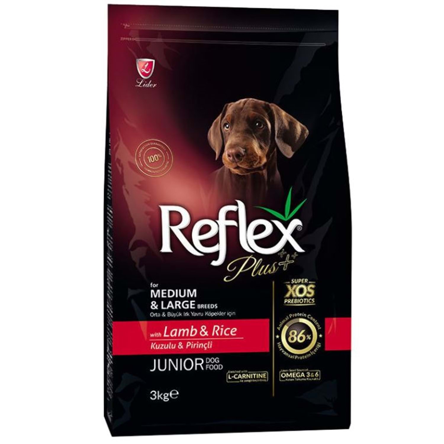 Reflex Plus Orta ve Büyük Irk Kuzu Etli Yavru Köpek Maması 3 Kg.