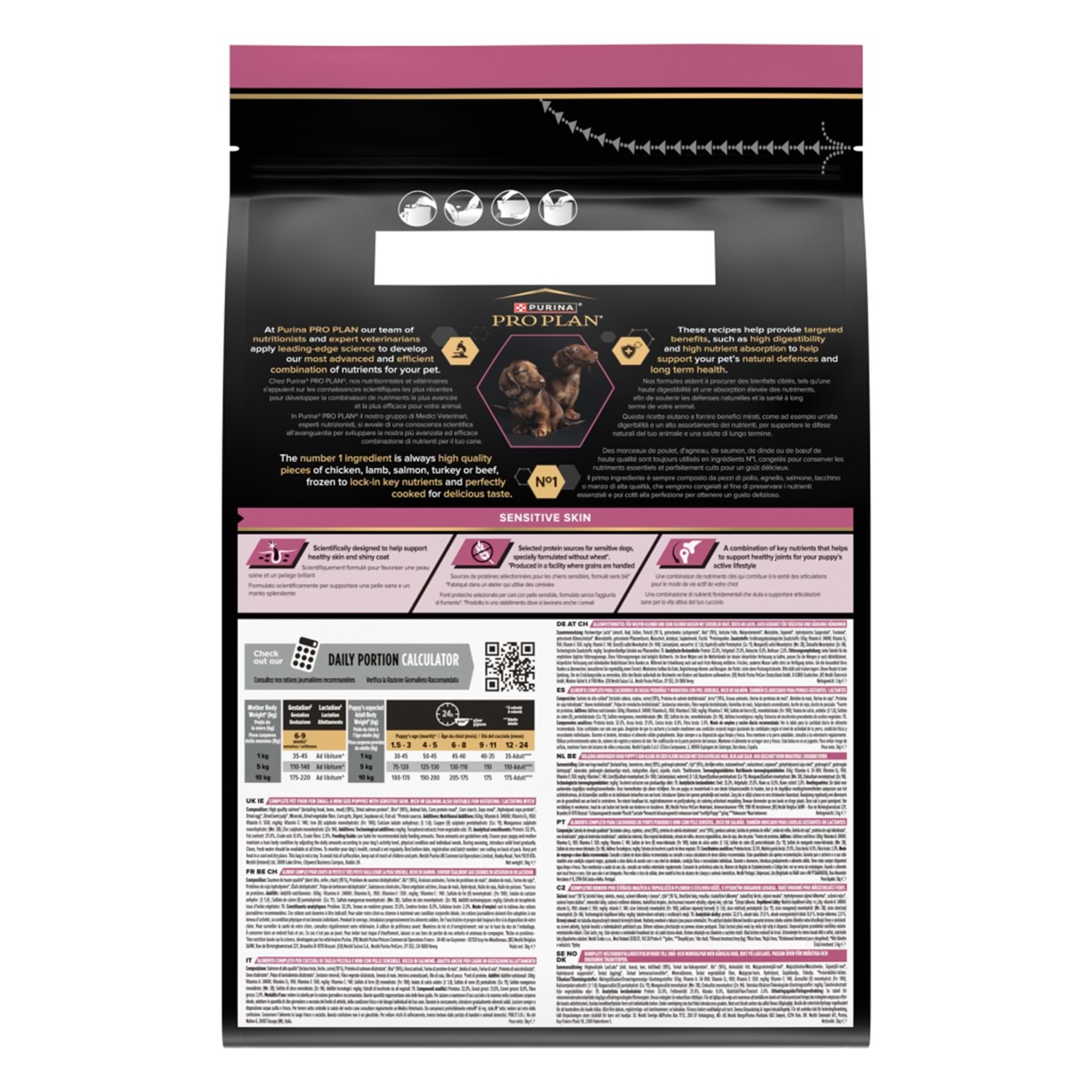 Proplan Sensitive Somonlu Küçük Irk Yavru Köpek Maması 3 Kg. Proplan yavru köpek maması somonlu, 1 - 12 ay arasında 10 kg'a kadar olan mini ve küçük ırk hassas yavru köpekler için üretilmiş, küçük ırk yavru köpek maması çeşididir. Proplan yavru köpek maması, somon ve pirinç içeriği ile protein ve karbonhidrat bakımından zengin, yüksek lezzet ve sindirilebilirliğe sahiptir. Yavru köpek maması ucuz seçmek yerine içeriği zengin olan ve kaliteli ham maddeler kullanarak hazırlanmış, bilinen bir marka seçilmelidir. Pek çok yavru köpek maması öneri ve seçenekleri arasından neden Proplan somonlu yavru köpek mamasını seçmeniz gerektiğini aşağıdaki sıralayabiliriz; Pro Plan Somonlu Yavru Köpek Maması Yavruların bağışıklık sistemlerinin gelişimini desteklemek ve sağlıklarını devam ettirebilmeleri için gerekli tüm besinsel ihtiyaçlarını karşılamak üzere özel olarak formüle edilmiştir. Gerçek somon etinden sağlanan % 32 protein içeriği, zenginleştirilmiş optimal protein ve kalori oranı ile güçlü, sağlıklı kas yapısını destekleyen yavru köpek mamasıdır. Herhangi bir allerji riskini azaltabilmek için daha az allerjen olarak bilinen somon eti, pirinç ve mısır protein kaynağı olarak kullanılmıştır. * Proplan yavru maması, içeriğindeki gerçek somon etinin sağladığı yüksek kalitedeki proteinler, gıdaya bağlı oluşabilecek herhangi bir hassasiyet riskini minimuma indirir ve antikor gelişimini artırır. * Somonlu yavru mamasının içeriğinde hassas derili yavrular için, Omega 3 ve 6 yağ asitleri bulunduğundan, somonlu köpek maması gıda hassasiyeti ile bağlantılı deri reaksiyonlarını azaltmaya yardımcı olmaktadır. * Zor beğenen bir çok küçük ırk yavru köpeklerin iştahsızlığını gideren özel kaplamalı yüksek kalitede somon balığı içermektedir. * Proplan küçük ırk yavru köpek maması, hassas derili küçük ırk yavru köpeklerin olası deri reaksiyonlarını azaltmaya yardımcı olmak için sınırlı protein kaynağı içermektedir. * Yüksek kalitede yağ, protein ve karbonhidrat içeriği sayesinde sindirilemeyen besin miktarı azalır. Bu sayede bağırsağın alt kısımlarına ulaşan az miktarda içerik sayesinde dışkı ve gaz miktarında azalma olur. * Sindirim sistemi hücrelerinin beslenmesini sağlayan glutamin amino asidi ve diğer besleyiciler sağlıklı bir sindirim sistemi oluşmasını destekler. * Proplan somonlu yavru köpek maması vitamin A, linoleik asit ve çinko ile daha iyi deri elastikiyeti sağlar. * Omega 3, omega 6 ve E vitamini kaynağı olan esansiyel balık yağları daha parlak ve sağlıklı tüy oluşumunu destekler. * Protein kaynağı olarak somon, mısır ve pirinç kullanılarak deri ve sindirim sisteminde oluşabilecek hassasiyet riski azaltılmıştır. * Optimum düzeydeki, kalsiyum, fosfor ve D vitamini sayesinde daha güçlü kemik ve diş gelişimini destekler. * Diş ve diş etlerinde plak ve tartar birikimini azaltarak ağız sağlığının korunmasına yardımcı olur. * Proplan yavru köpek maması içerdiği DHA ile görme ve beyin faalayetlerini arrtırmaya, sağlıklı kalmasına yardımcı olur. Yavru köpek maması tavsiye edecek olursak, 80 yıldan uzun süredir araştırmalarını sürdüren Nestle marka güvencesi le köpeğinizin beğenisine sunulan Proplan yavru köpek maması tavsiye listemizde ilk sıralarda yer alacaktır. Kaliteli ve ucuz köpek maması çeşitleri için sitemizi ziyaret edebilir ve köpek mamaları kategorimizi inceleyebilirsiniz. Proplan Yavru Köpek Mamasının İçeriği Somon Balığı (% 20,00), mısır, mısır gluten unu, kurutulmuş somon proteini, hayvansal yağlar, pirinç (% 7,00), mısır grizi, pancar küspesi, sakatat, mineraller, vitaminler. Yavru Köpek Maması Analizi Ham protein % 32,00, ham yağ % 21,00, ham selüloz % 2,50, omega 3 % 1,10, ham kül % 6,50, DHA % 0,60, vitamin A 28.100 IU/kg, vitamin D3 910 IU/kg, vitamin E 660 mg/kg, vitamin C 230 mg/kg, demir sülfat 175 mg, kalsiyum 2,90 mg, bakır sülfat 45 mg, mangan sülfat 45 mg, çinko sülfat 375 mg, sodyum selenit 0,26 mg. * Köpeğinize ilk kez Proplan yavru köpek maması veriyorsanız, başlangıçta 2 hafta boyunca alışık olduğu besinlerle karıştırarak veriniz. * Yukarıdaki günlük verilecek kuru mama miktarları, köpeğinizin aktivitesine, egzersiz durumuna, çevre şartlarına, mizacına ve strese bağlı olarak değişiklik gösterir. Yukarıdaki miktarlar optimal vücut ağırlığı sağlamaya yönelik olarak gerektiğinde arttırılabilir veya azaltılabilir. * Kuru, serin, böcek ve haşereden uzak bir yerde ve paketin ağzı kapalı olarak saklayınız. * Genel kural olarak, kuru köpek maması ile birlikte taze içme suyu verilmelidir.