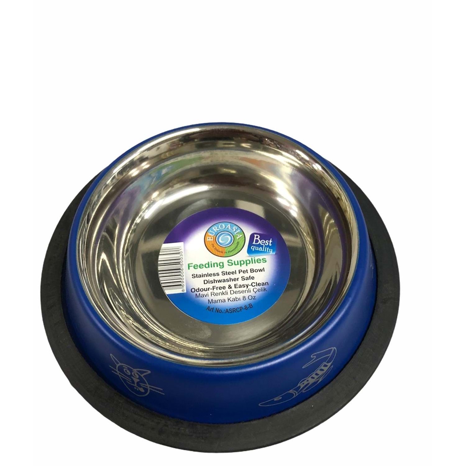 ASRCP-8 Mavi Renkli Desenli Boyalı Çelik Mama Kabı 8 Oz (236 ml)