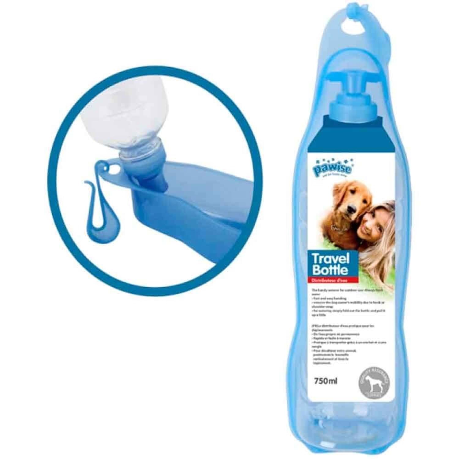 11202 PET Handy Waterer - Köpek Su Sişesi 750 ml. Yolculuklarınız ve gezintileriniz sırasında su ihtiyacını karşılayabileceğiniz, pratik kullanımlı, kolay taşınabilen, demonte edilerek yıkanabilen, 750 ml hacimli portatif köpek suluğudur. Kedi ve köpekler pet şişelerden ağız yapıları nedeniyle su içememektedirler. Pawise markası bunu düşünerek pet suluğun yanında su hazneside eklemiştir. * Su içme bölümü plastik malzemedendir. * Asma kancası bulunmaktadır: