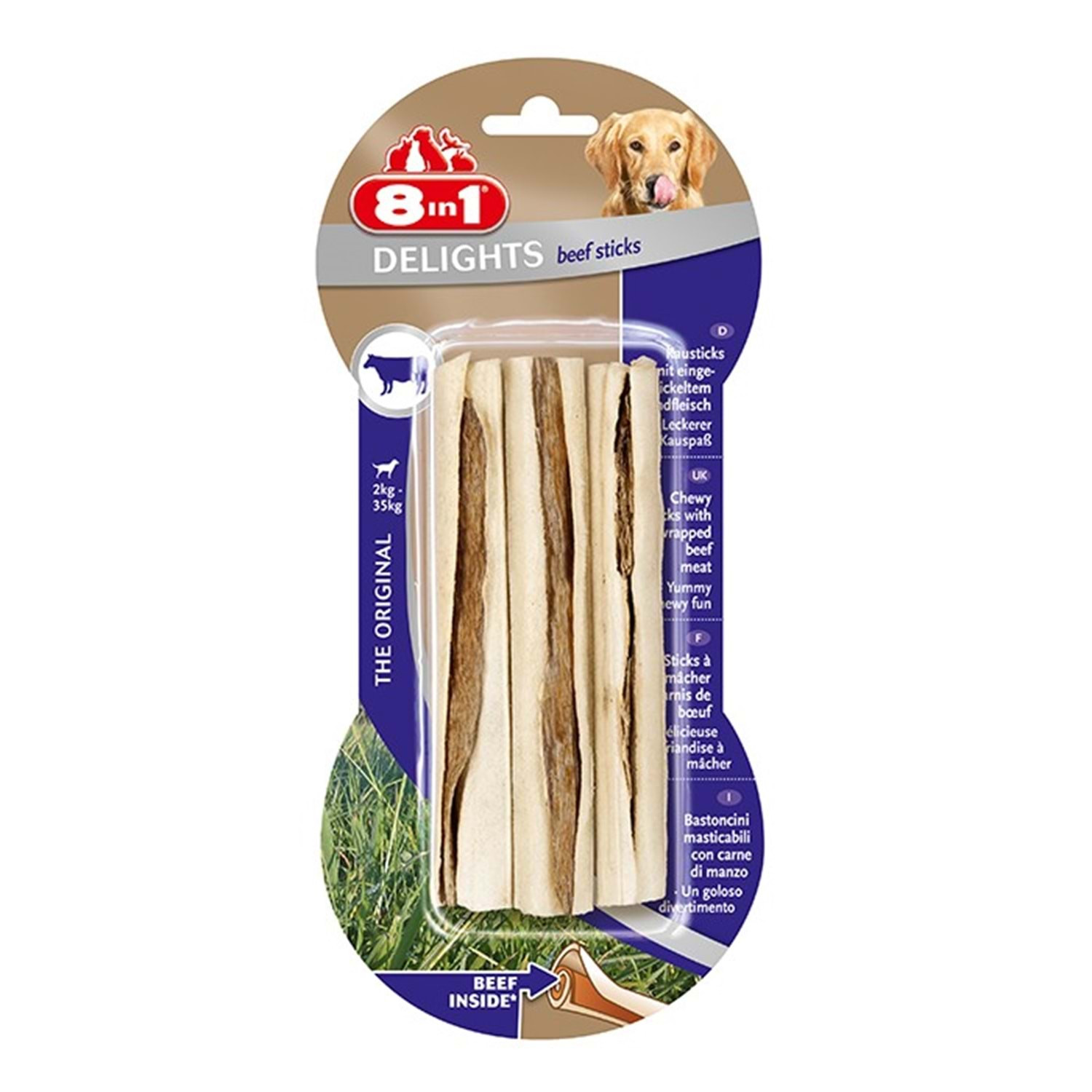 8in1 Biftekli Delight Sticks Burgu Köpek Ödül Kemiği 75 gr. 8in1 köpekler için ağız bakımı ve ödül kemiğidir. Köpeğiniz hem iştahla yerken aynı zamanda da diş temizliğini gerçekleştirecektir.8in1 Delights Bones içinde bulunan yüksek kalitede sindirilmiş tavuk eti sayesinde köpeğiniz son parçasına kadar kemiğe ilgil duymasını ve büyük bir iştahla yemesini sağlar. 8in1 Delights Bones benzersiz patentli kombinasyonu sayesinde köpeğiniz çiğnerken diş ve diş etlerini sağlıklı ve daha güzel hale getirir. Sadece % 2 yağ içermektedir.Tatlandırıcı ve boyar madde içermez. Köpekler için gıda takviyesidir. İçeriği: Et ve hayvansal yan ürünleri (Sığır Eti 12%), Mineraller. Analitik bileşenleri : Ham protein 82,0%, Ham sıvı ve katı yağlar 1,0%, Ham lif 1,0% , Ham kül 2,0%, Nem oranı 14,0% Genel Hatırlatmalar: Ödül yiyecekleri lezzetlerinden dolayı normal gıdaların alımını azaltabilir. Köpeğinize ödül kemiği verdiğinizde mamasından bir miktar kesinti yapmayı unutmayınız. Köpeğiniz heyecanla yerken gözetiminizde olmalıdır. Ödül kemiklerini köpeğinizin ebatına göre tercih ediniz.