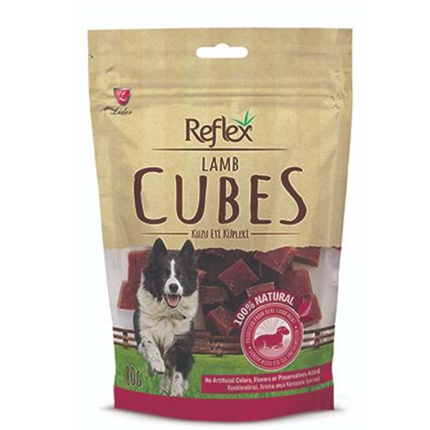 Reflex Kuzu Dilim Küp Doğal Köpek Ödülü 80 Gr.x4 Adet İçerik Listesi: Kuzu Eti , Sebze Gliserini, Soya Proteini,Nişasta, Tuz. Analiz Değerleri:Ham Protein: Minimum 40%, Ham Yağ 1%,Ham Seluloz 4%,Nem 18%. Bütün yetişkin köpekler için önerilir. Sürekliköpeğiniz için taze içme suyu bulundurun. Küçük ırk köpekler için ufakparçalara parçalanıp verilmesi tavsiye edilir. Ödül mamalarını elledikten sonraellerinizi sabunla yıkayınız. İnsan tüketimi için uygun değildir. Serin ve kuruyerde saklayınız.
