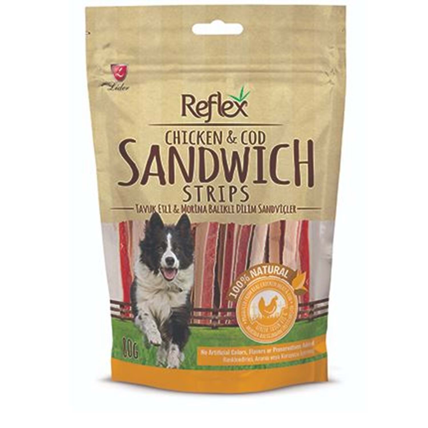 Reflex Tavuk Sandviç Çubuk Doğal Köpek Ödülü 80 Gr.x4 Adet İçerik Listesi:Tavuk Eti, Morina Balığı, Sebze Gliserini, Soya Proteini, Nişasta, Tuz. Analiz Değerleri:Ham Protein: Minimum 30%, Ham Yağ 1%, Ham Seluloz 4%,Nem 20%. Bütün yetişkin köpekler için önerilir. Sürekli köpeğiniziçin taze içme suyu bulundurun. Küçük ırk köpekler için ufak parçalaraparçalanıp verilmesi tavsiye edilir. Ödül mamalarını elledikten sonraellerinizi sabunla yıkayınız. İnsan tüketimi için uygun değildir. Serin ve kuruyerde saklayınız.