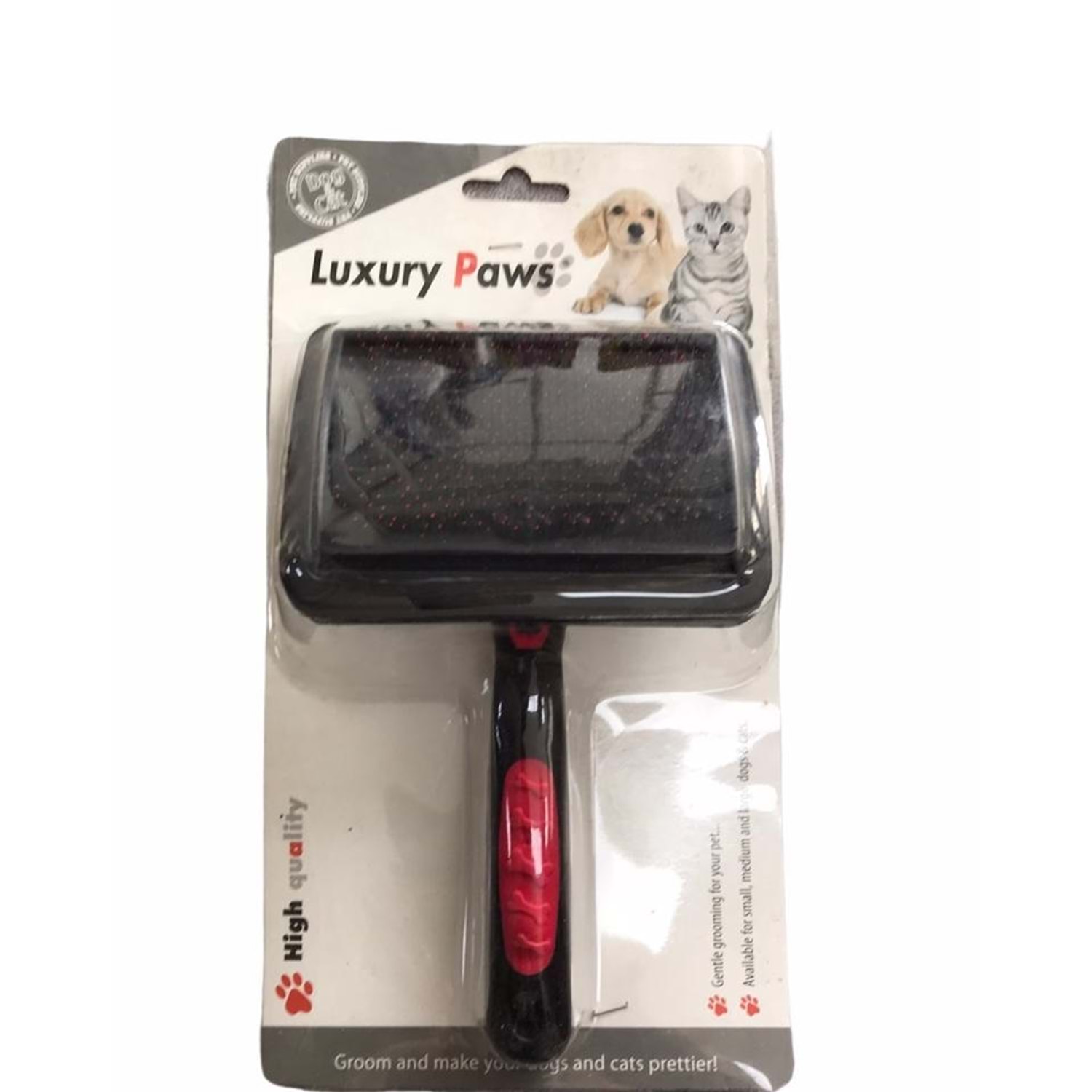 Luxury Paws Plastik Saplı Köpek Fırçası Large 19x12 cm. Orjinal Paketli Üründür.Blister ambalajındadır. Orta Boy köpekler ve kediler için, tüylerin taranması ve ölü tüylerin toplanmasına yardımcı bakım fırçasıdır. Fırça yüzeyi 9 x 12 cm genişliğindedir. İnce telli, geniş yüzeyi sayesinde daha fazla alanın taranmasını sağlar.Fırçanın sap kısmı kabartma kemik desenlidir.Ürün aynı olmakla beraber paket kartlarında değişik resimler olabilmektedir.